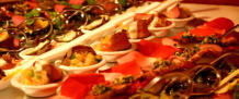Lachs-, Kabeljau- und Rotbarschfilet auf dreierlei Saucen, Gemüsestreifen,